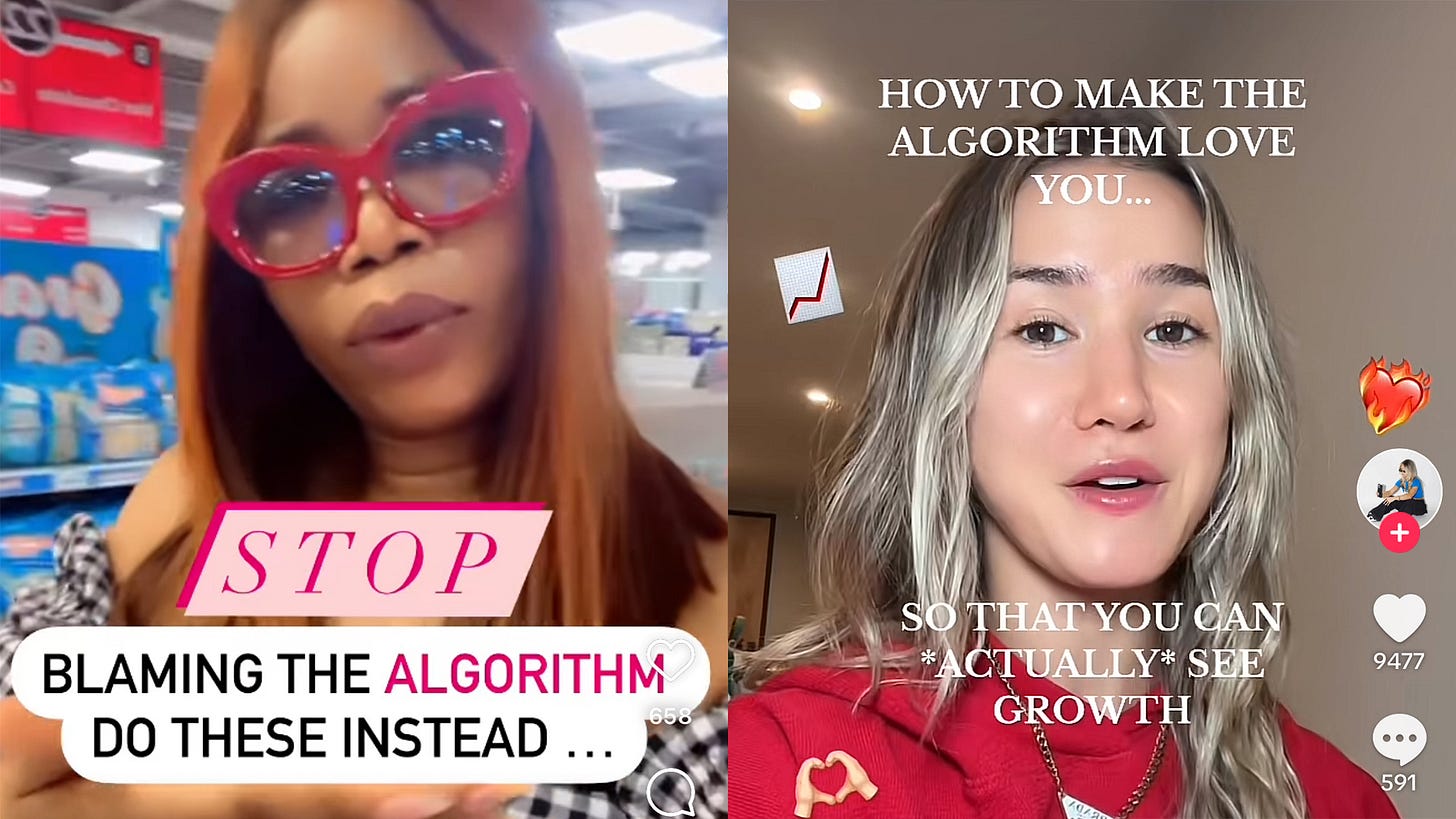 Of course, this means of production is incongruous with creativity, but nurturing an idea into fruition is an ancient concept these days, now you have to get it out ASAP. It also must be attention-grabbing from the first 0.3 seconds, not come across as too try-hard and feed into some algorithmic niche, or you risk a digital flop. Even if your piece of content is technically amazing or your best work yet, if it doesn’t make Daddy Algo happy, he’ll punish you by hiding it.